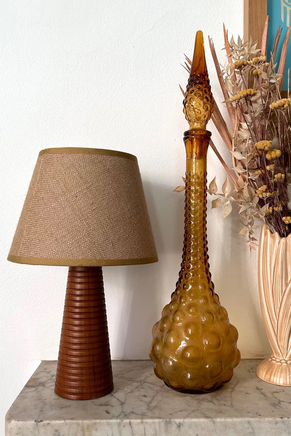 A stylish accent lamp with lamp shade made from teak style wood. This rechargable lamp takes up to 4 hours to fully charge and it can be moved around the home. It includes an integrated bulb.
