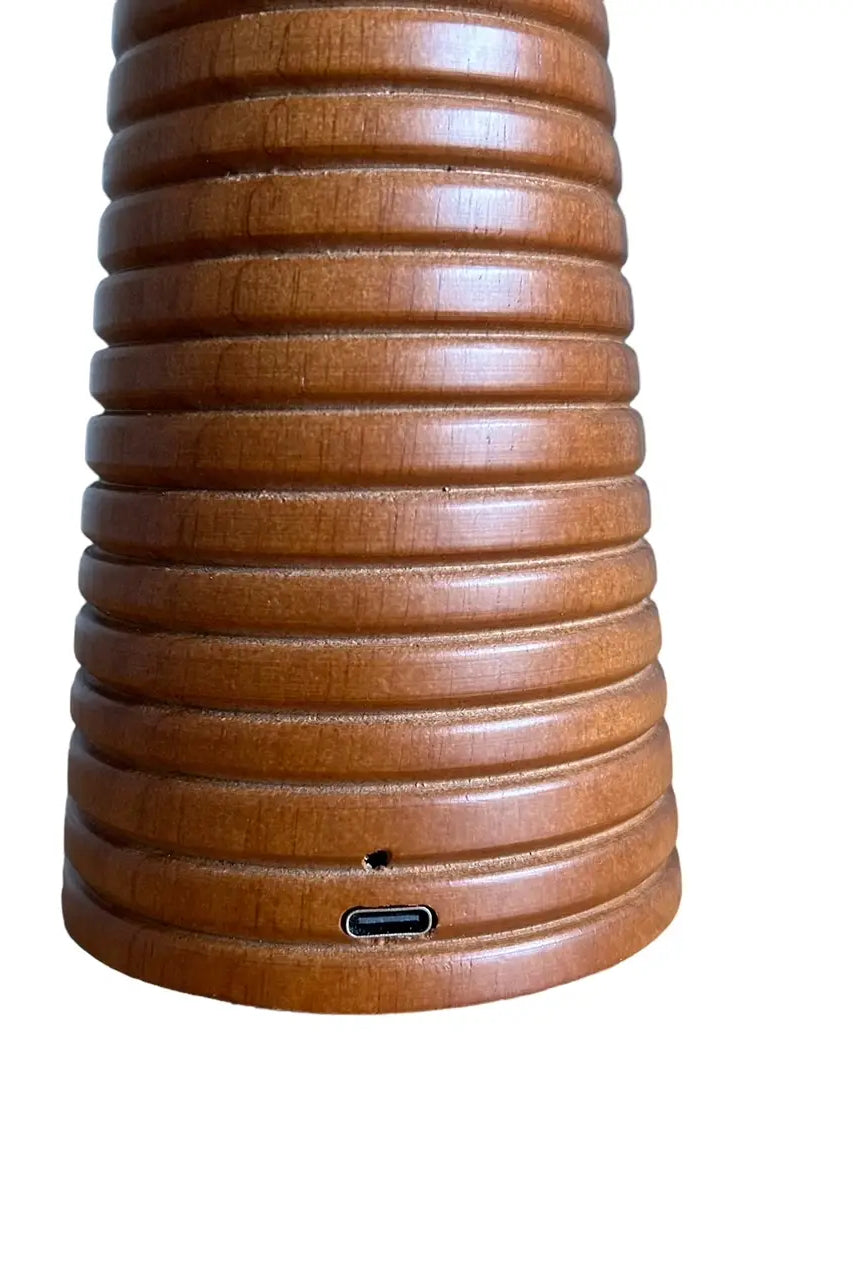 Rechargable Touch Lamp | Ribbed Teak Style Wood