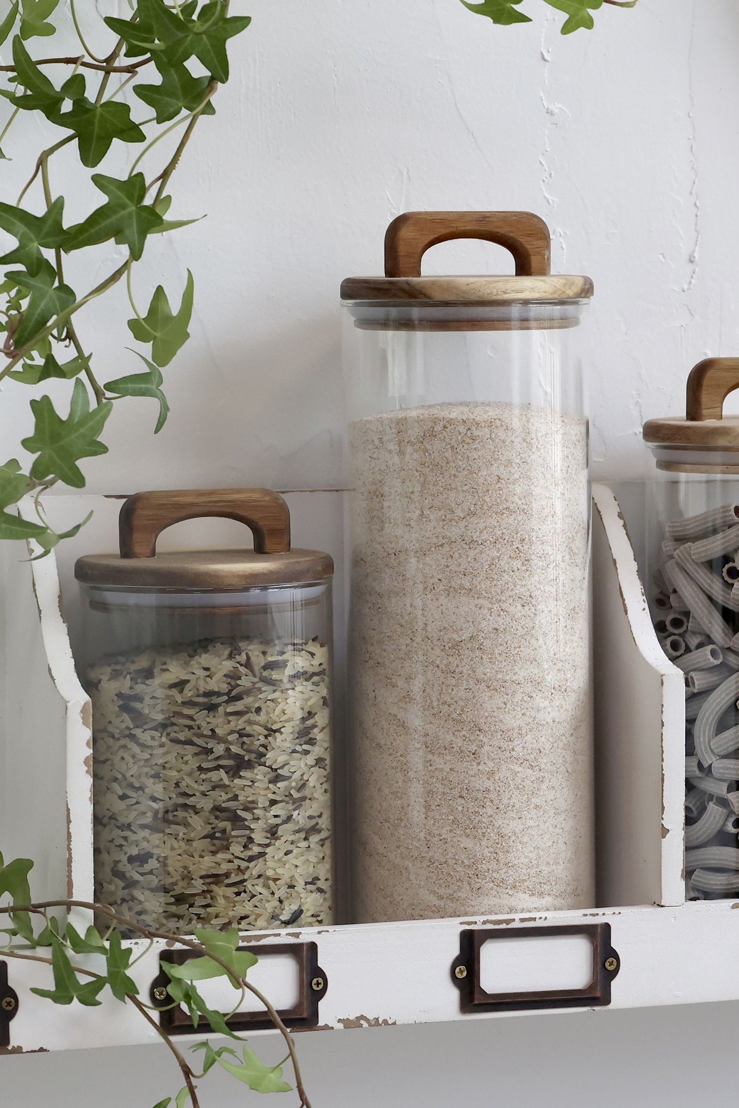 Experience the luxury of organization with our Storage Jar featuring a beautiful acacia wood lid. Made of durable glass and iron, this jar holds up to 2000 ml of any food you desire. Dishwasher and foodsafe, but for the ultimate care and elegance, hand wash the lid. Perfect for any room, but not microwave or refractory safe.