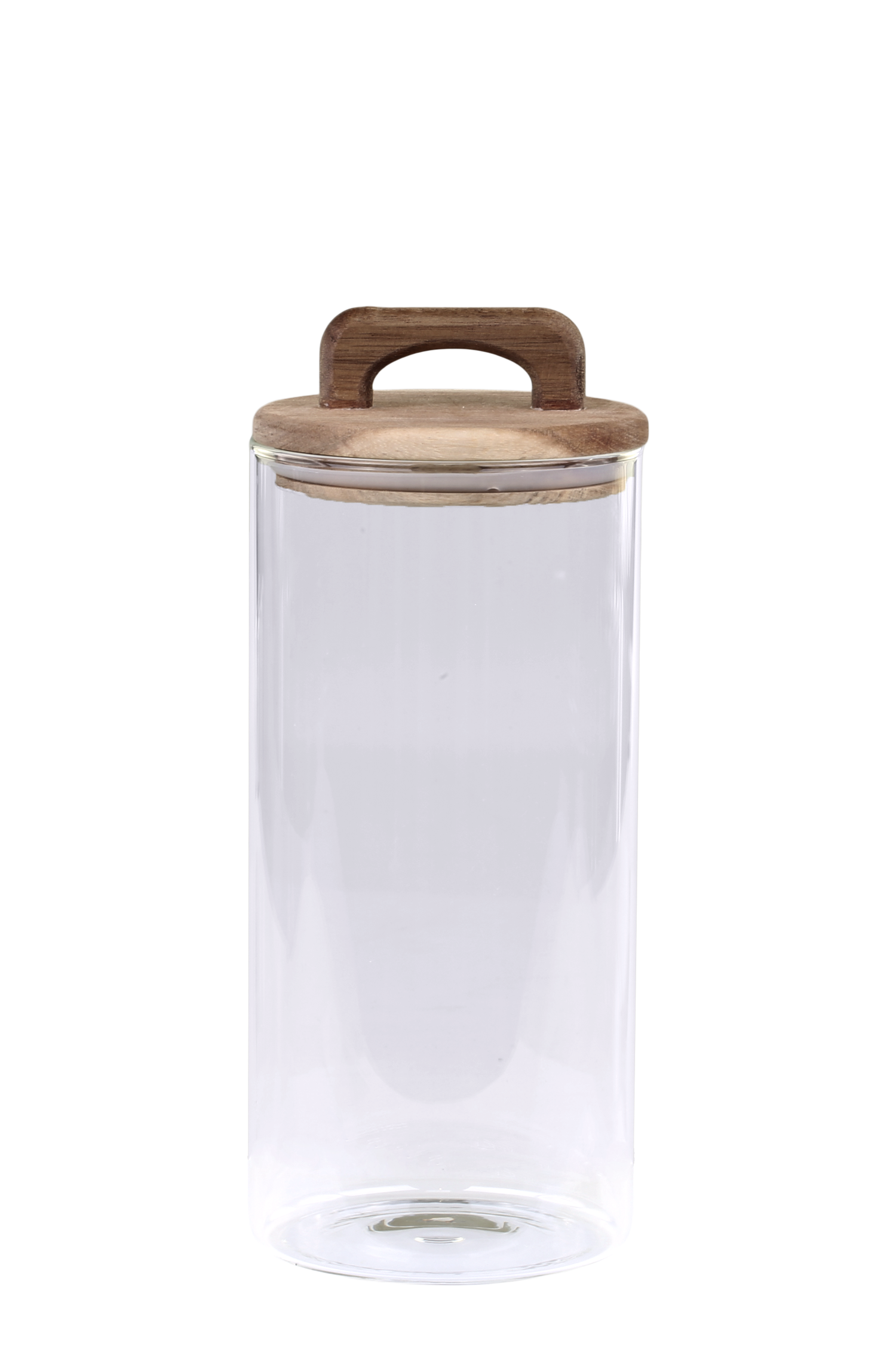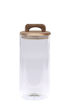 Experience the luxury of organization with our Storage Jar featuring a beautiful acacia wood lid. Made of durable glass and iron, this jar holds up to 1500 ml of any food you desire. Dishwasher and foodsafe, but for the ultimate care and elegance, hand wash the lid. Perfect for any room, but not microwave or refractory safe.